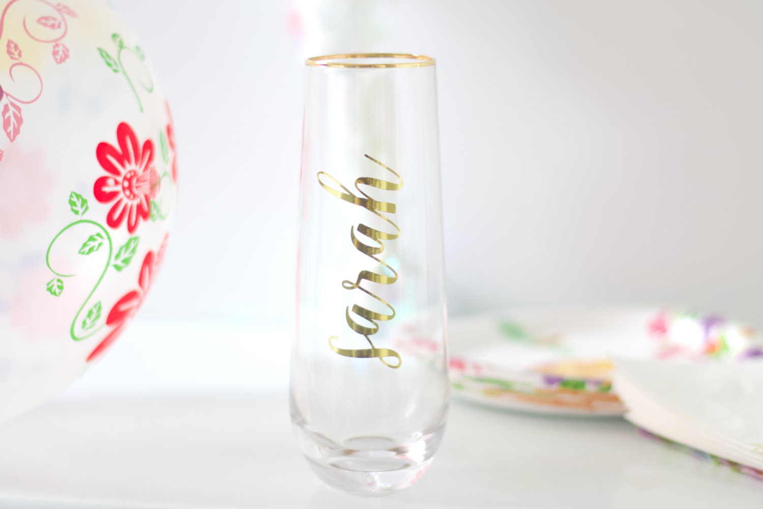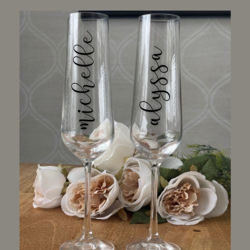 Bridal Party Gift | Custom Vinyl Decals |Champagne or Wine Glass Sticker |Wedding or Bachelorette | Maid of Honor Bridesmaid Personalization