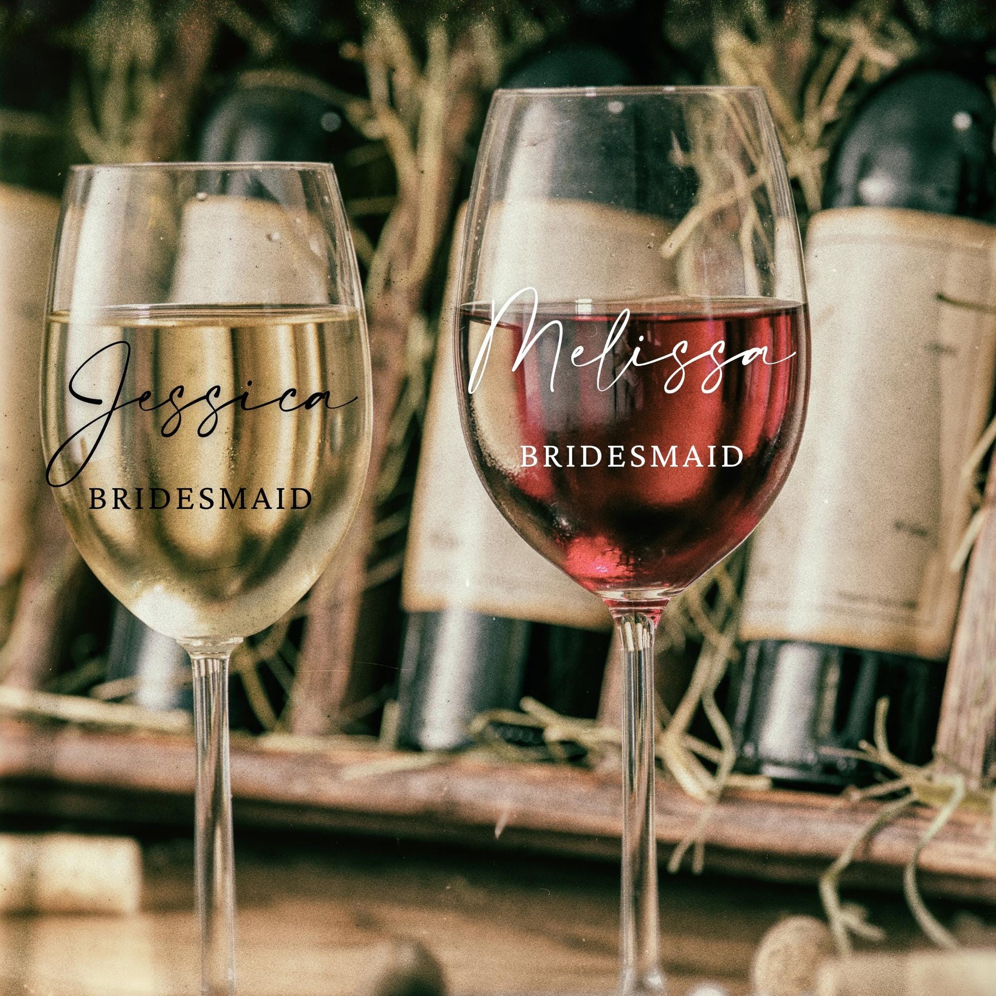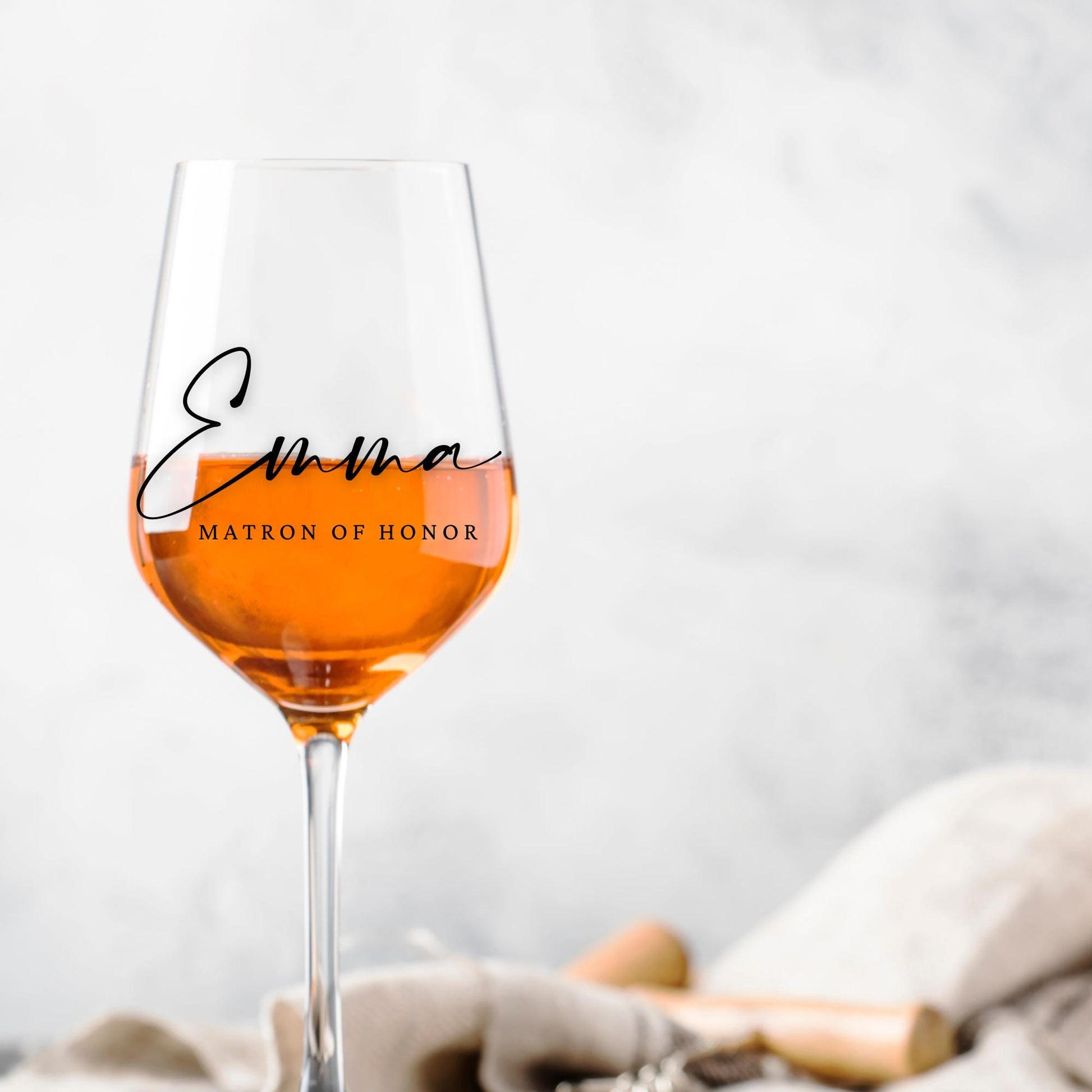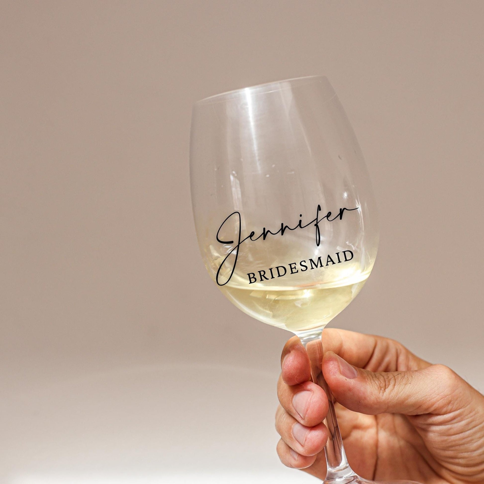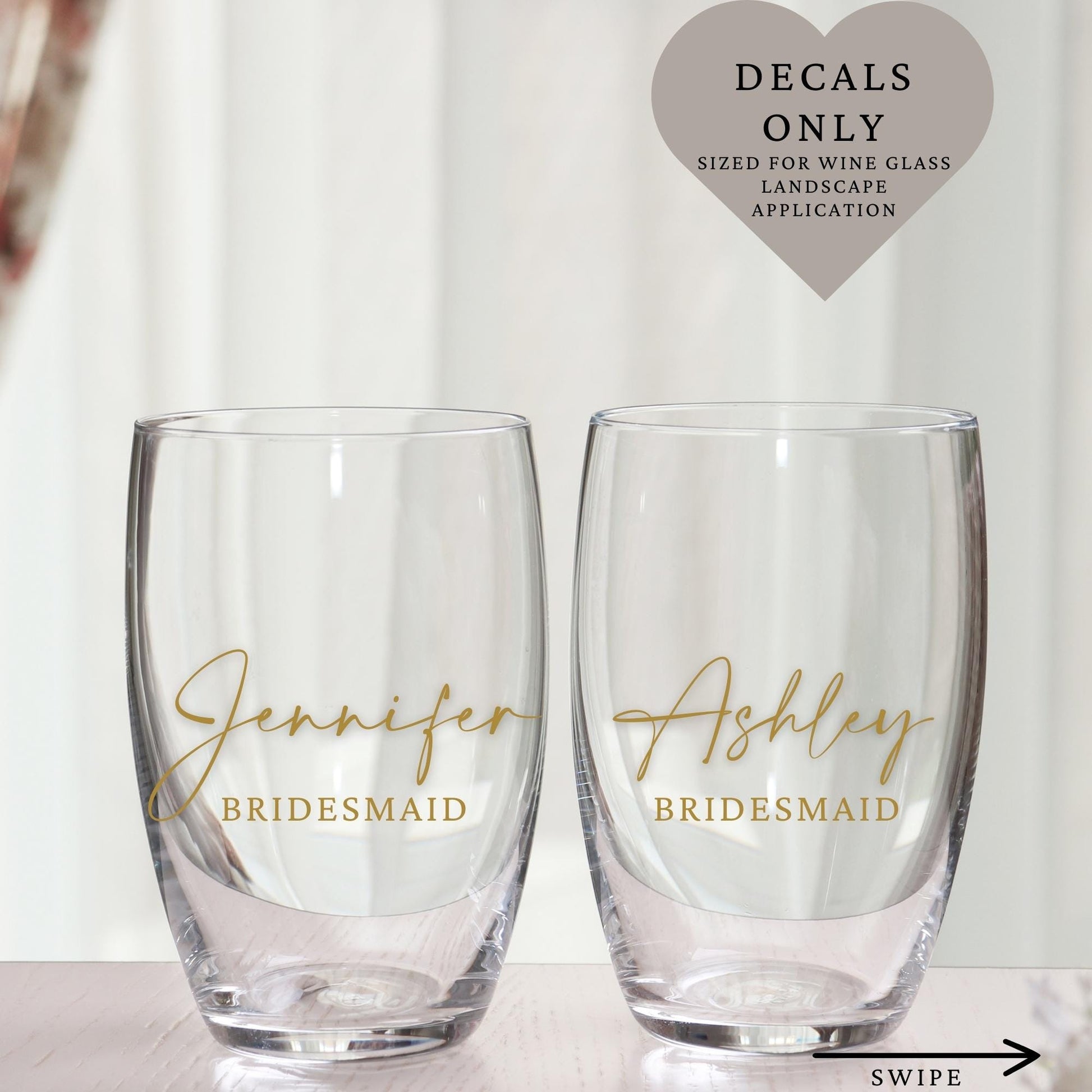 💕Personalize any Stemless or Stemmed WINE GLASS with a Personal Name DECAL for yourself, your Bridesmaid, Maid of Honour(Honor), Matron of Honour(Honor), Flower Girl, Mother of the Bride(Groom). Note: This listing and price includes both a personalized NAME AND TITLE champagne flute DECAL