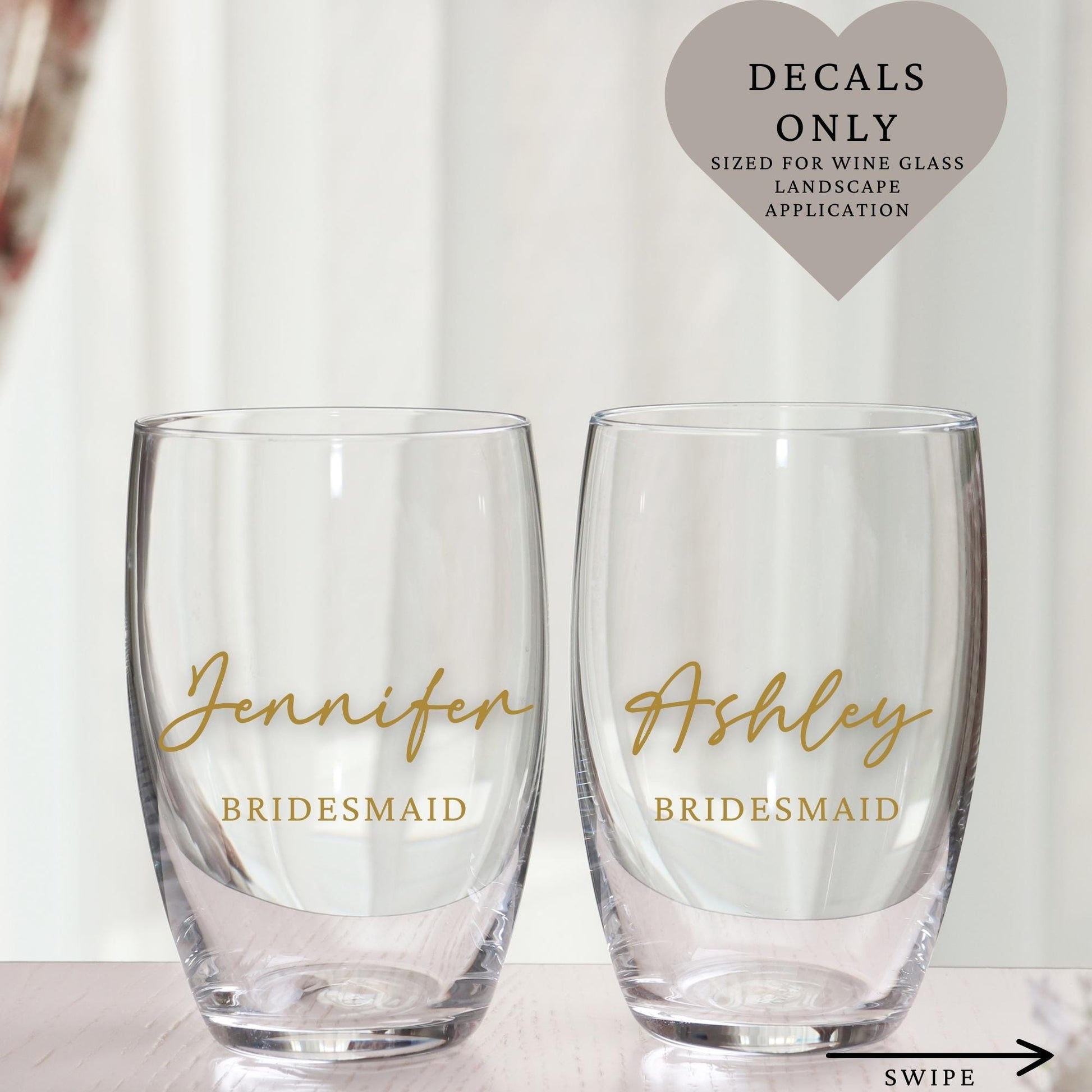 🇨🇦✨Make your wedding or special event unforgettable with our Custom Name Decals, designed for wine glasses and tumblers. These permanent vinyl stickers showcase names or roles in our Romantic Charm Font collection, adding a personalized and stylish touch to stemmed or stemless glassware. Perfect for weddings, bachelorettes, or any celebration, these decals ensure your glasses stand out and stay elegant throughout the event. Elevate your occasion with lasting sophistication and custom charm.