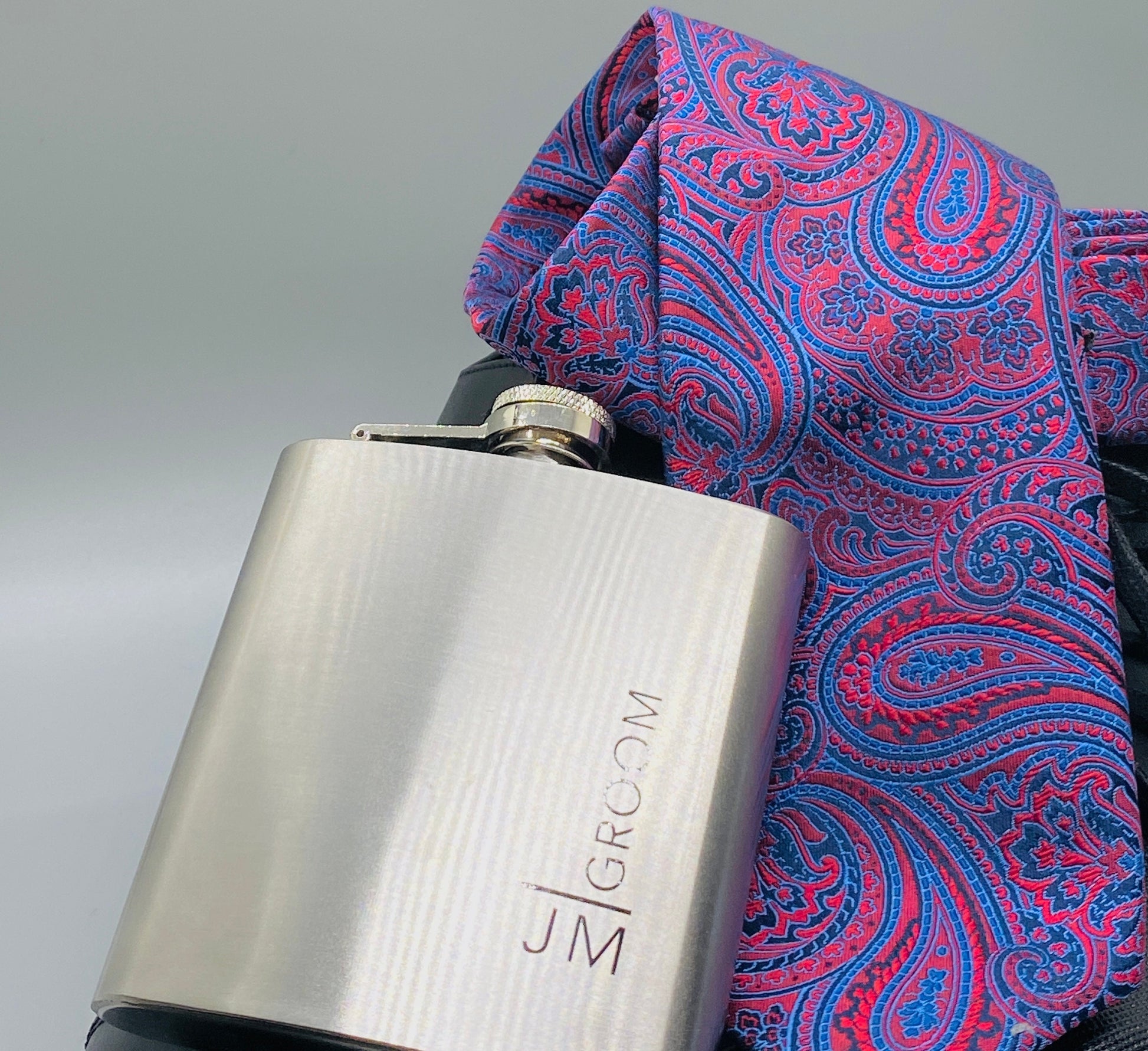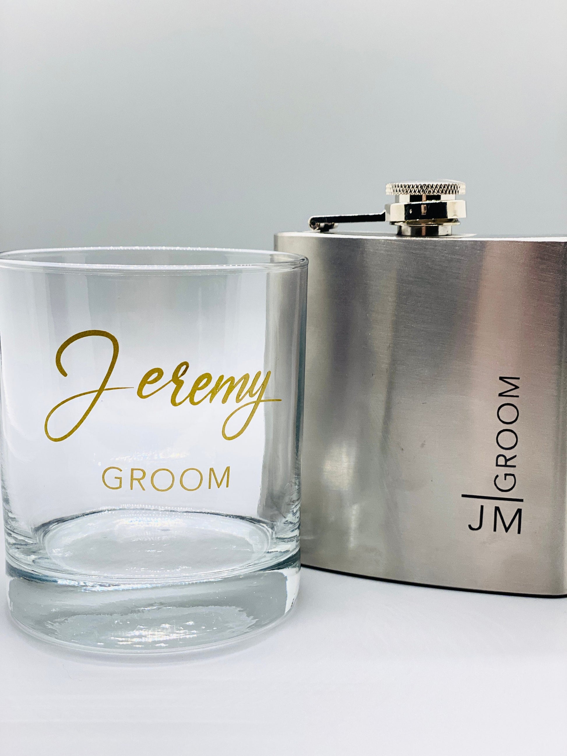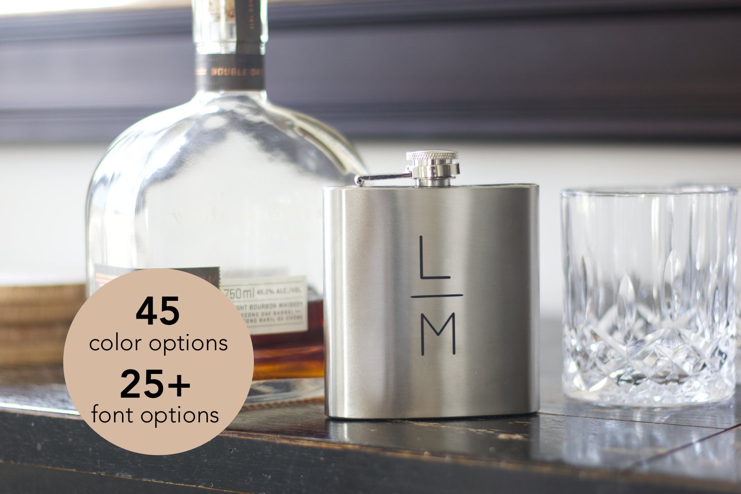 Personalize your groomsman gifts with these permanent personalized keepsakes! Suitable for any standard size 6 oz flask! Get the party started, by personalizing your boys (and girls) flasks with their initials, name, wedding party title and more! Personalized flasks are also a great gift for your best man, and the father of the bride, and father of the groom!