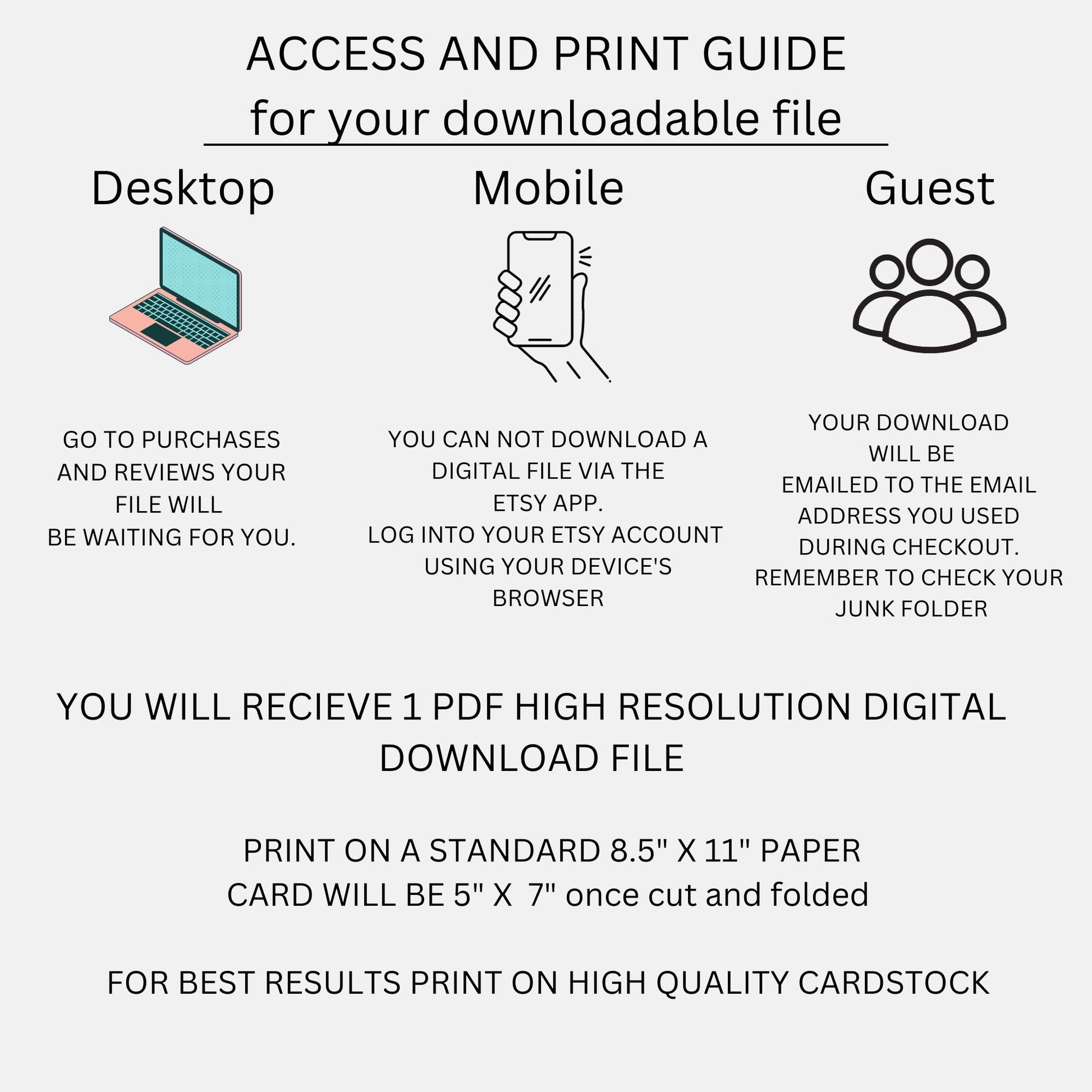 Digital download PDF sized for 5X7 card printed on standars 8.5"x11" paper.