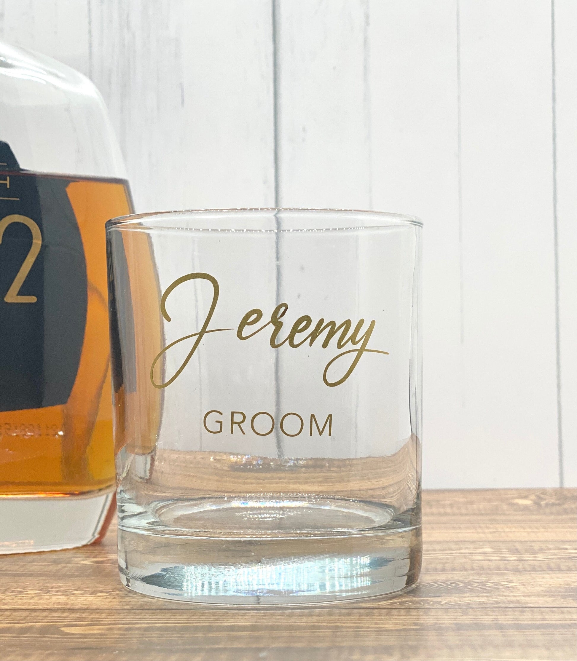 Celebrate your big day in style with our personalized vinyl decals made just for groomsmen drinking glasses. Designed to fit perfectly on whiskey tumblers, beer mugs, pint glasses, shot glasses, or flasks, these decals turn simple drinkware into a unique keepsake your wedding party will actually use and treasure.