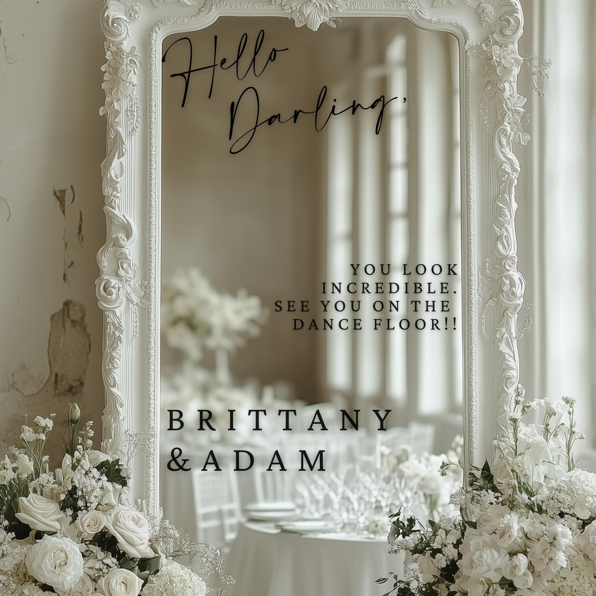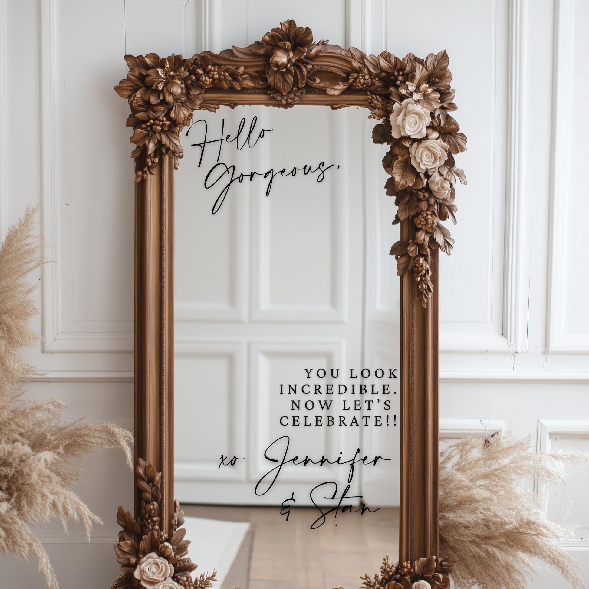 🔥Set the tone for your special day with a stunning Wedding Welcome(selfie) mirror, a perfect blend of elegance and charm. Crafted from high-quality vinyl, these customizable vinyl decals with your personal message will invite your guests into a world of love and celebration. Whether displayed at the entrance of your ceremony or reception, your sign is more than just wedding decor; it’s a heartfelt greeting that makes your guests feel cherished. Available in customizable sizes and colours to fit your mirror (or other display item) you can personalize it with your names, wedding date, and a special message. Let your love shine from the moment your guests arrive—transform your wedding into an unforgettable experience with a beautiful welcome(selfie) sign that sets the stage for your forever. Order DIY Custom Decals today and make a lasting impression!