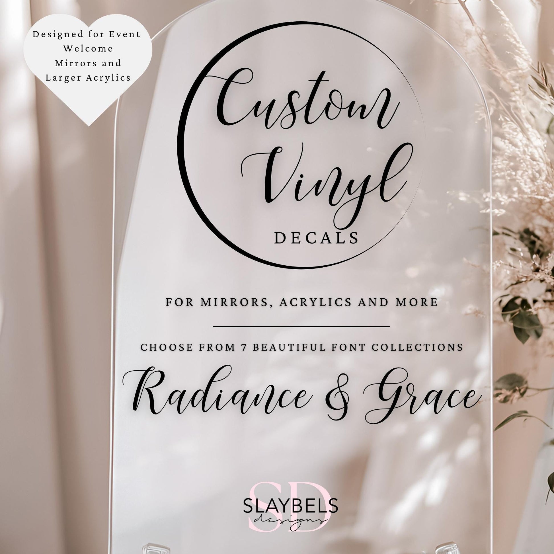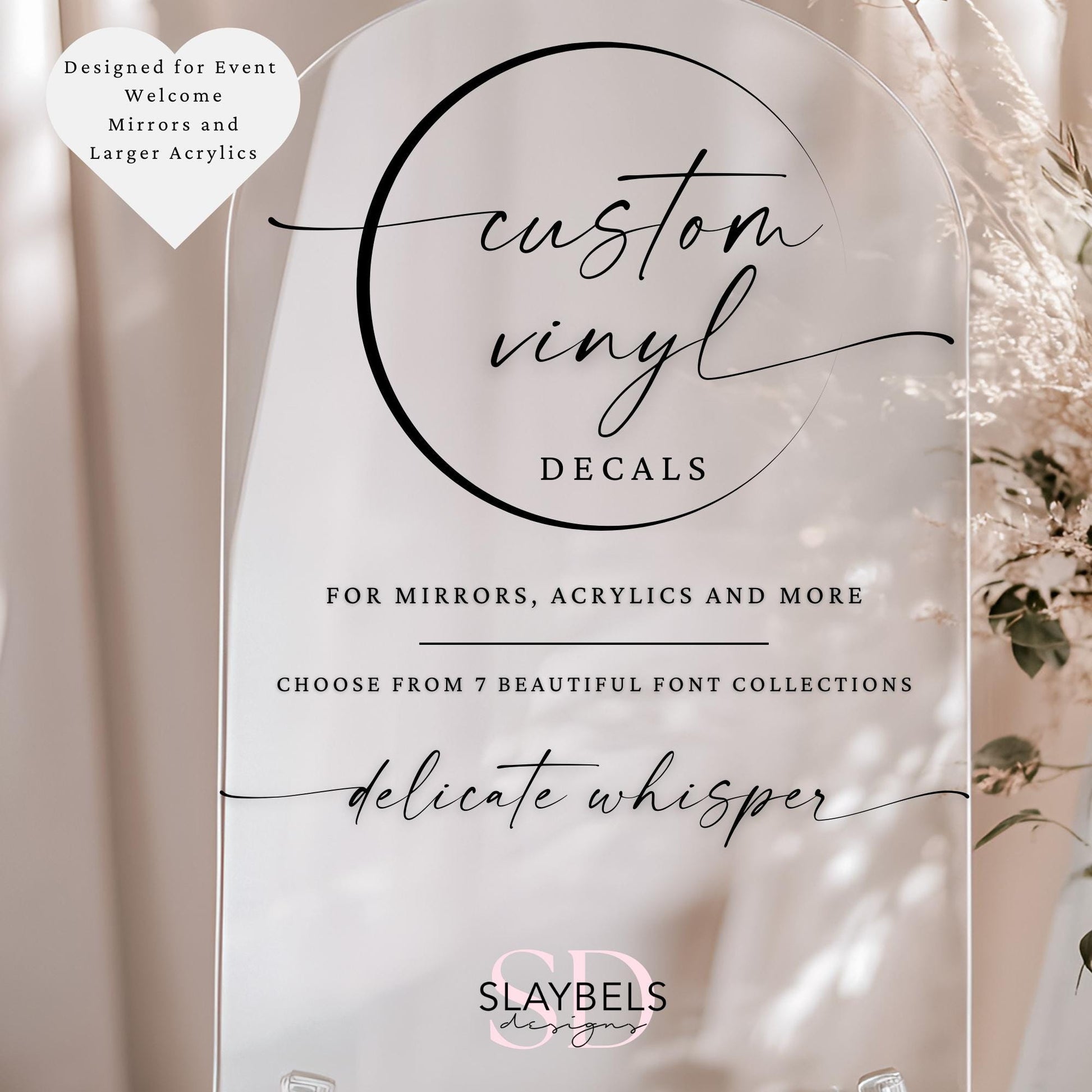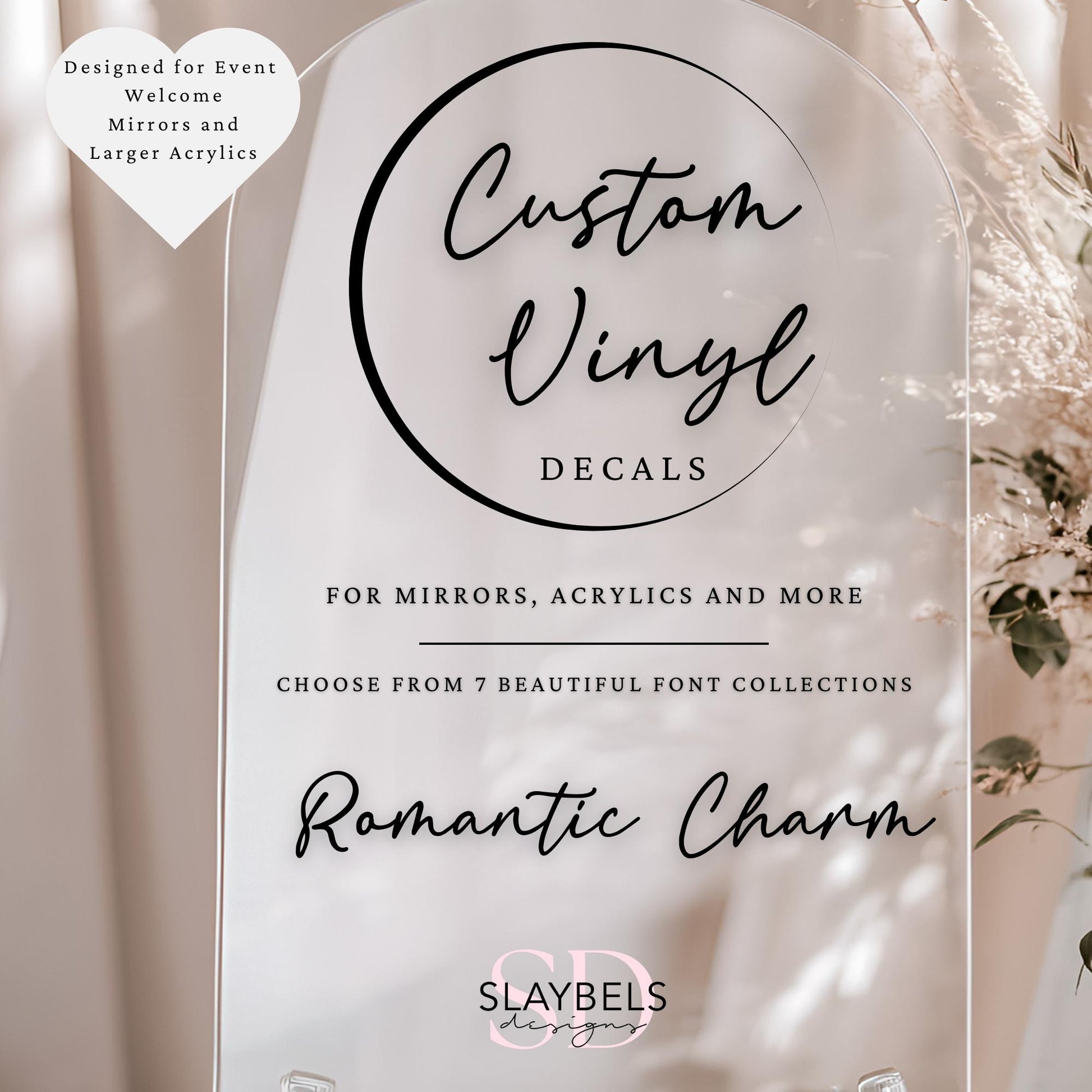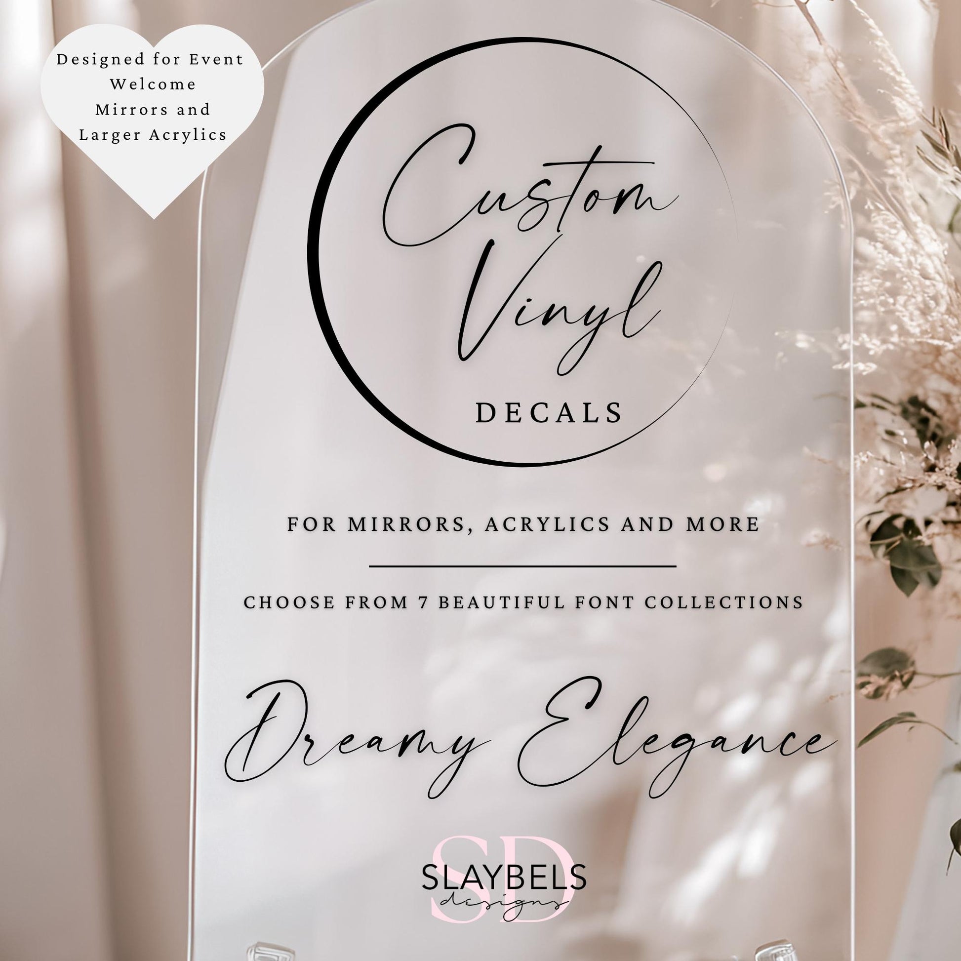 Set the tone for your special day with a stunning Wedding Welcome(selfie) mirror, a perfect blend of elegance and charm. Crafted from high-quality vinyl, these customizable vinyl decals with your personal message will invite your guests into a world of love and celebration. Whether displayed at the entrance of your ceremony or reception, your sign is more than just wedding decor; it’s a heartfelt greeting that makes your guests feel cherished. Available in customizable sizes and colours to fit your mirror (or other display item) you can personalize it with your names, wedding date, and a special message. Let your love shine from the moment your guests arrive—transform your wedding into an unforgettable experience with a beautiful welcome(selfie) sign that sets the stage for your forever. Order DIY Custom Decals today and make a lasting impression!Â