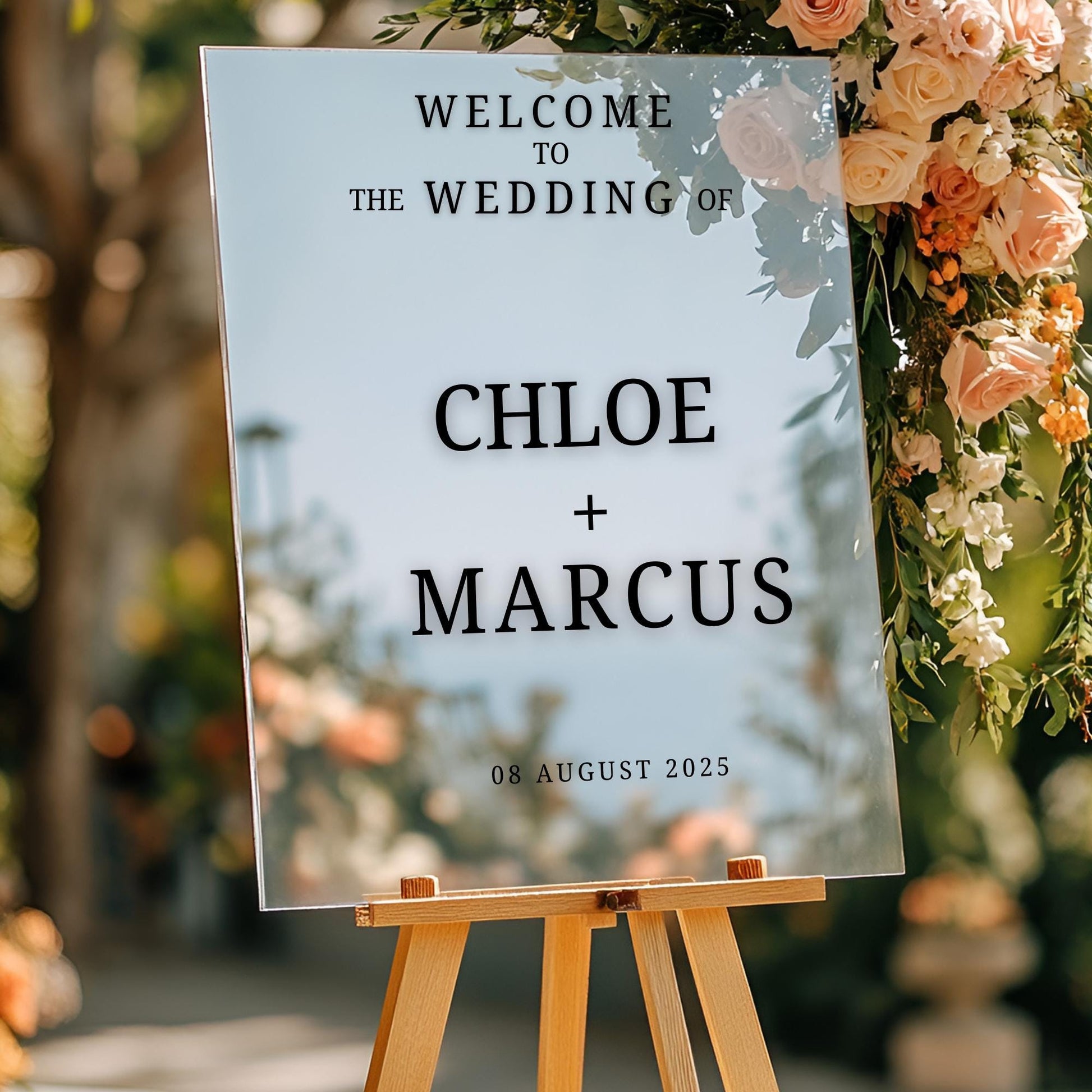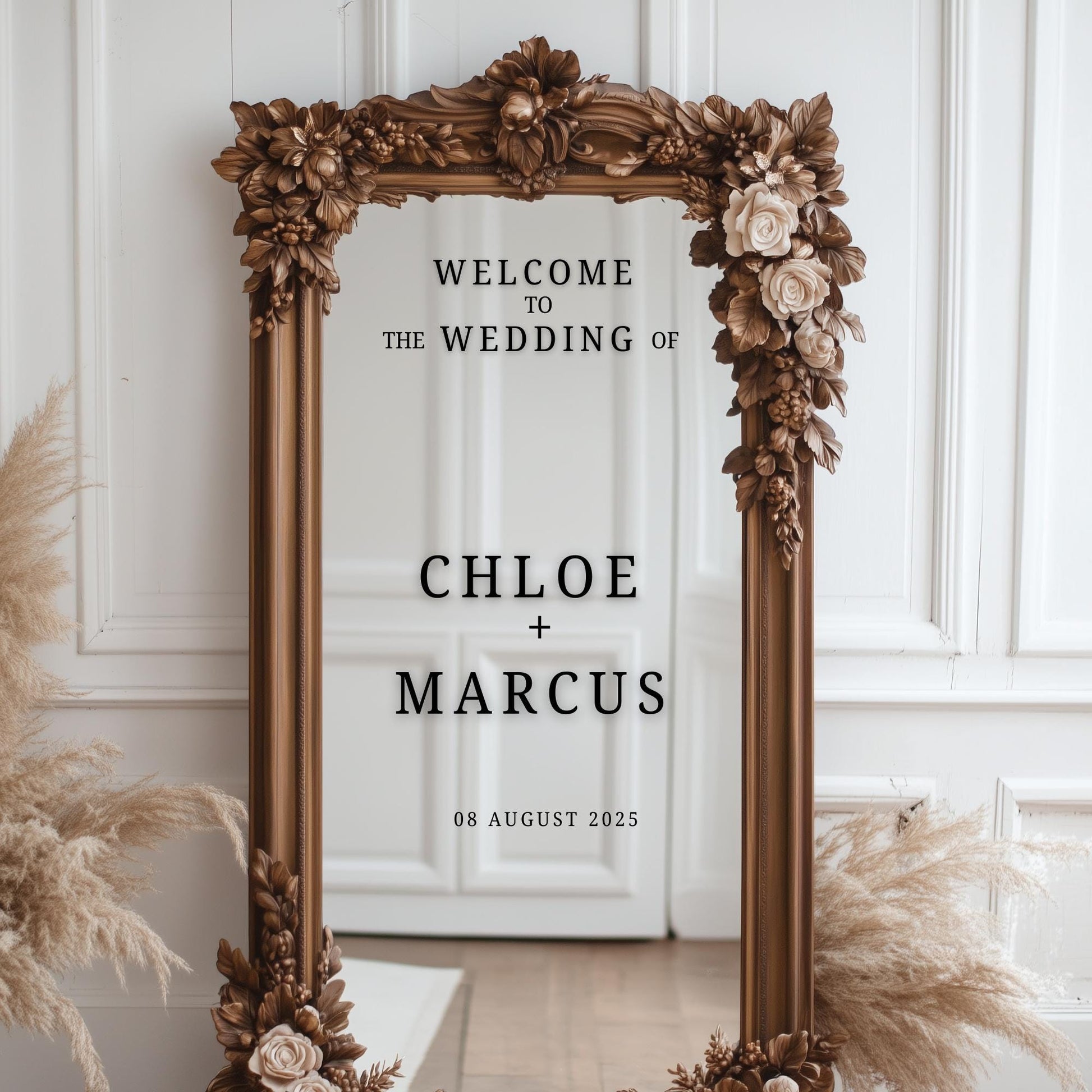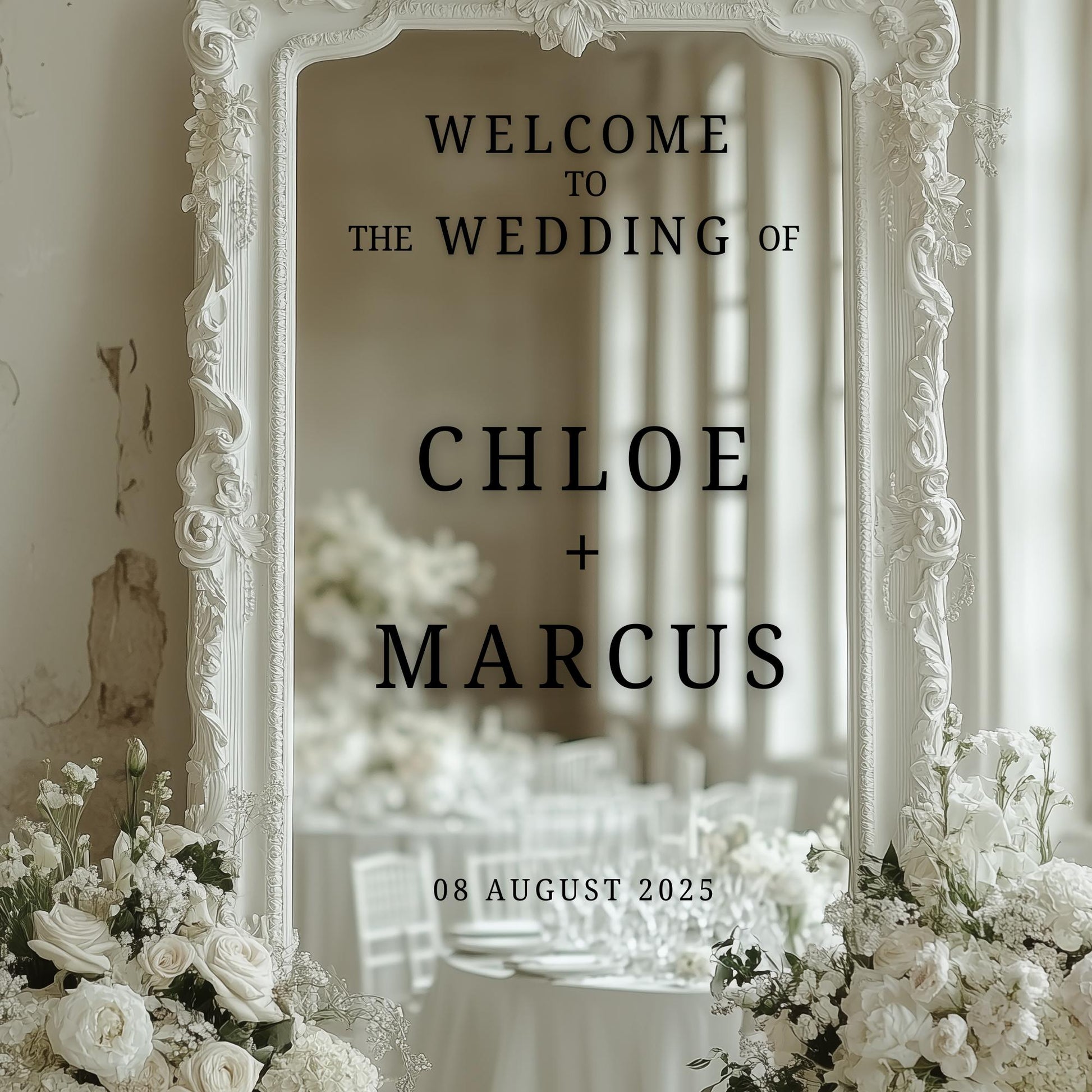 Custom Wedding Welcome Sign DECALS β Personalized Vinyl Stickers for Mirrors, Wood, Acrylic, Archways & Canvas Event Signage